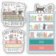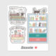 This sticker set captures the charm of a serene book nook with illustrations of a book-filled shelf, a stack of books with cozy coffee, and a playful phrase for weekend readers. Ideal for decorating planners, journals, or gifting to book enthusiasts.