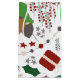 A whimsical holiday motif perfect for your holiday greetings with festive cheer and playful charm. Against a white background, illustration of a classic Christmas motifs in an animated style. Tiny gift box with ribbons and holly leaves with vibrant red berries; jingle bells and holiday dots creating a sense of lively movement capturing the joy and warmth of the season, ideal for spreading holiday magic at any gift.