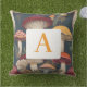 Whimsical Botanical Mushroom Pattern with Monogram Outdoor Pillow
