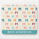 Whimsical Bow Pattern Rainbow Ribbons Custom Name Mouse Pad