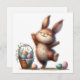Whimsical Bunny and Basket of Eggs Easter Greeting Card