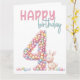 Celebrate a special little one’s 4th birthday with this adorable and whimsical birthday card! Featuring a playful watercolor illustration of the number 4 made of pastel candies and a cute bunny trying to sneak a sweet treat, this card is perfect for adding a touch of fun and sweetness to their big day.