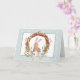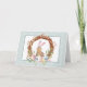 On the front of this pretty Easter card is a whimsical brown bunny inside of a willow frame wreath. At the bottom of the wreath are pastel colored Easter eggs. A pattern frame surrounds the image. Inside there are three customizable text fields in pink and pastel teal green. Make it say whatever you'd like!
