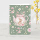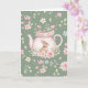 Whimsical Bunny Green Teapot Floral Easter Card