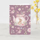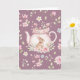 Whimsical Bunny Pink Teapot Floral Easter Card