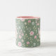 Whimsical Bunny Teapot Floral Spring Two-Tone Coffee Mug. This design features a delightful whimsical bunny nestled within a pink teapot, surrounded by spring blossoms and green foliage. This floral pattern brings a touch of spring magic to your everyday sips. Perfect for tea, coffee, or hot cocoa, it makes a delightful gift for Easter, Mother's Day, birthdays, or any occasion for a bunny lover.