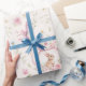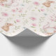 Whimsical Bunny Teapot Floral Wrapping Paper. Featuring an adorable bunny nestled within a delicate floral teapot, surrounded by a charming array of soft pink roses and greenery on a light cream background. This unique design is perfect for baby showers, birthdays or Easter.