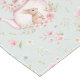 Whimsical Bunny Teapot Spring Floral Pattern Short Table Runner. Whimsical design featuring an adorable bunny nestled inside a delicate pink teapot, surrounded by watercolor flowers and lush green leaves. The soft mint green background enhances the gentle beauty of this pattern. Ideal for Easter decor.