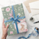 Whimsical Bunny Teapot Spring Floral Pattern Wrapping Paper