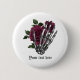 Whimsical gothic burgundy floral skeleton hand button customizable to your event specifics.