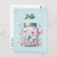 A postcard with a magical image featuring pastel colored butterflies in a jar.