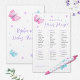 This baby shower game card is What's in your purse? The design features watercolor butterflies, flowers and confetti dots. Personalize the back of the cards with a name. Matching products available.