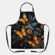Whimsical Butterfly Garden Apron with orange and black. Flowers in yellow and blue.