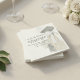 These Whimsical Calligraphy Graduation Bow Napkins features a beautiful, hand-painted watercolor sketch of a graduate from a back-view perspective. The design highlights a stylish black mortarboard adorned with a delicate border of white pearls and a stunning, oversized fabric bow with long, flowing tails. To complete the look, the graduate holds a lush bouquet of creamy white roses.