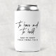 These whimsical calligraphy wedding favor can coolers are perfect for a modern wedding. The design features elegant yet rustic typography for a simple minimal look. Personalize the can coolers with your names and wedding date.