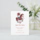 Save the date postcard with a cute retro style carousel horse. Drawn in Pretty pink colors with fancy flowers.