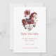 Save the date card with a cute retro style carousel horse. Drawn in Pretty pink colors with fancy flowers.
