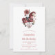 A birthday invitation with a cute retro style carousel horse. Drawn in Pretty pink colors with fancy flowers.