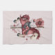 A kitchen towel with a cute retro style carousel horse. Drawn in Pretty pink colors with fancy flowers.