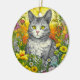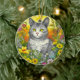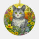 Whimsical Cat and Flowers Ceramic Ornament