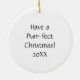 Lightweight, smooth, pure white ornament with nice sheen. Perfect size to be seen from across the room ... and to attract closer inspection! Price was great for ordering enough for the whole family! Clear, bold black design just as requested. Matches the order exactly. Just so nice!