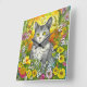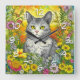 Pretty colorful whimsical cat and flowers yellow floral art. Ai cat and flowers.