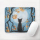 Whimsical Cat in Tree Full Moon Blue Mouse Pad
