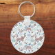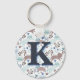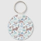 Whimsical Cat Pattern, Blue Gray Monogram Keychain