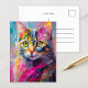 Whimsical Cat Portrait Abstract Modern Art Postcard