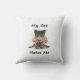 This throw pillow showcases a darkly funny illustration of an angry cat, playing on the classic stereotype that cats are aloof, cold, or even openly hostile toward their owners. It captures the humor of cats as tiny tyrants who rule the house and tolerate humans only on their own terms.