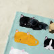 Adorable sleeping cats pattern features a tuxedo or bicolor cat, a gray tabby, an orange tabby, a white cat, a black cat, and a rag doll cat on a mint green background. Perfect for the (crazy) cat people in your life.