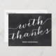This casual-chic thank you postcard features the text "With thanks" in a whimsical script font against a chalkboard-style background.