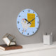 Fun kitchen wall clock done in a blue and white gingham table cloth look pattern, with black numbers and dots, around the edge. Cartoon graphics of a big waffle and a little white chicken decorates the face of the clock. Customize to add any text you want. Makes a fun gift idea for any southern food lover.