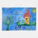 Whimsical illustration - house, heart and magic tree Blue, yellow, green drawing.