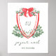 This chic, vintage style holiday poster features a colorful, whimsical Christmas design. A bright red crest with your monogram and a bow is surrounded by watercolor green botanical foliage, and modern handwritten script says "joyeux noël," or "Merry Christmas" in French.