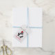 Cute holiday gift tags feature whimsical black and white frog illustration with red Santa hat, a string of holiday lights and customizable "Happy Holidays" text