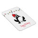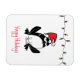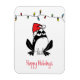 Whimsical black and white frog illustration with red Santa hat, a string of holiday lights and customizable "Happy Holidays" text