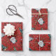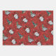 Christmas holiday wrapping paper sheets feature cute Christmas gnomes on a red background, fun for your holiday gift giving.