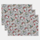 Christmas holiday wrapping paper sheets feature cute Christmas gnomes on a silver-grey background, fun for your holiday gift-giving.