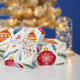 Bring a smile to the faces of your friends and relatives when they receive your Christmas gifts wrapped in this whimsical paper. The pattern is so cute with bright, cheery holiday colors of red, blue, and yellow and vintage watercolor designs. Bits of Yuletide ephemera and wisps of pine tree boughs are additional decorative bits.