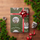 Merry Christmas in dark green modern script -- If you crop your photo into a square before uploading, it will be easy to edit the design. The paper includes a unique and trendy Merry Christmas greeting with a bright and joyful pine branch pattern on the back. This design has an informal, joyful look to it with painted elements and a handwritten font. If you need to move anything around, click on the customize button to make changes.
