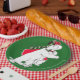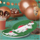 Fancy, cute and funny skating polar bears during the Christmas holidays. Great for all those guests and friends alike at your next shindig! Colorful green, white and reds adorn this paper plate. Don't forget the matching cocktail napkins for a truly great party.
