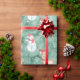 Whimsical Christmas wrapping paper has a snowflake patterned background in green and is covered with jolly snowmen and the cutest reindeer!