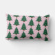 Throw pillow featuring cute, whimsical, christmas tree seamless pattern with pink ribbons.