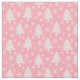 This fun pink and white Christmas fabric features a whimsical Christmas tree and snowflake pattern.