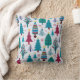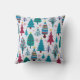 Whimsical abstract Christmas trees pattern in turquoise, red, yellow, and white.