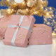 Wrap your gifts in this unique whimsical Christmas Tree Wrapping Paper. Pink background with whimsical striped and paisley trees.