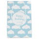 My original digital art design of whimsical white clouds in a repeating pattern on a blue background.