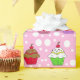 Red, Purple, Blue whimsical cute cupcakes and polka dots gift wrap for birthdays, baby showers or weddings.
