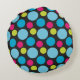 Whimsical Colorful Dots Pattern Blue Pink Modern Round Pillow